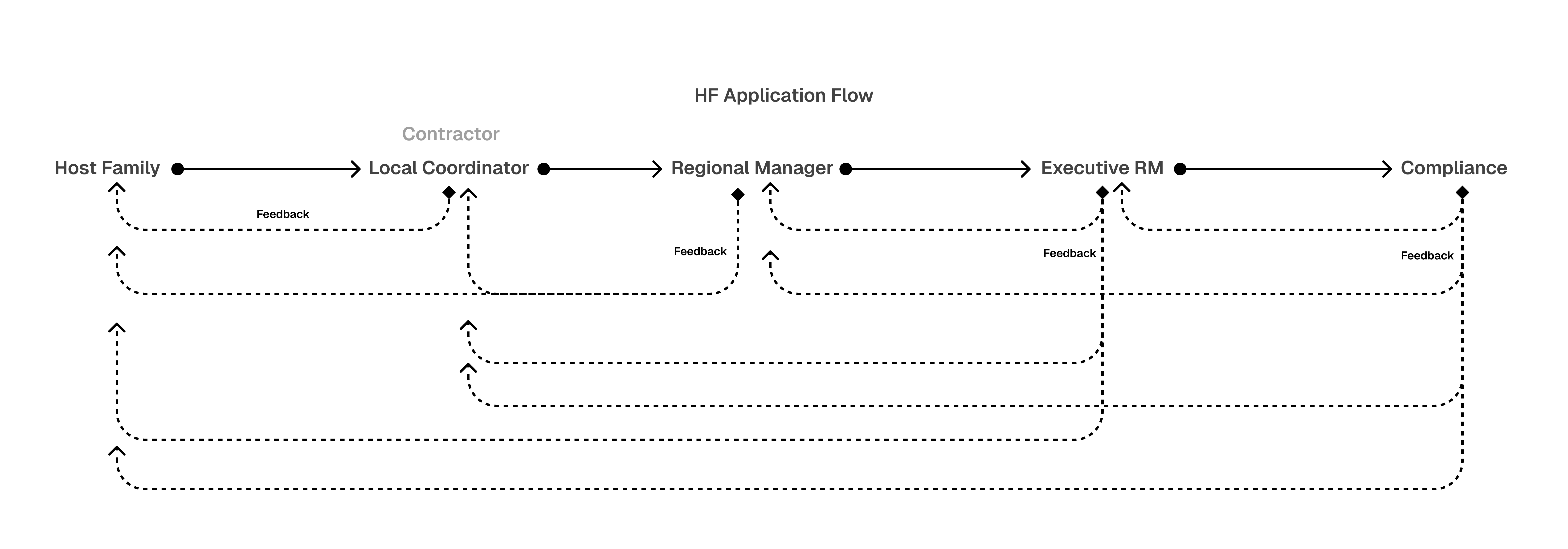 The system was built on a hierarchical review model. Applications moved upward through levels: participant, to partner or Local Coordinator, to Greenheart. Partners and Local Coordinators worked on applications they were directly responsible for. Greenheart sat above all partners as the central reviewing authority, reviewing every application regardless of its source. Even within Greenheart, there were internal levels of approval before an application was accepted into the system.