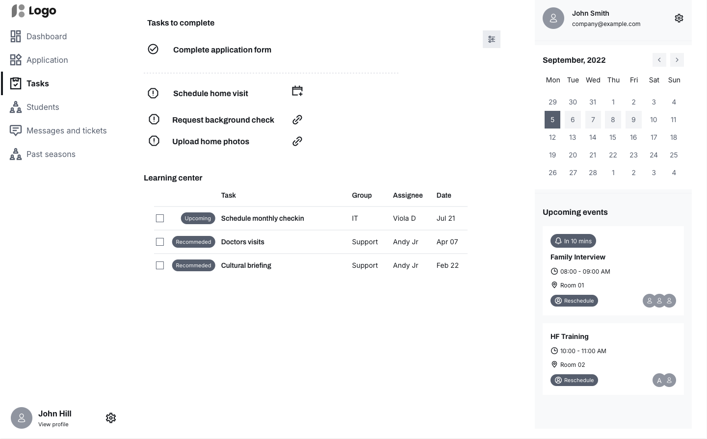 A key design tension emerged early: the same interface had to serve both professional partners managing dozens of applications and individual participants navigating their own. This was addressed through visual indicators that didn’t require domain knowledge and progressive disclosure - layering complexity so that basic users saw what they needed without being overwhelmed, while power users could access deeper detail.